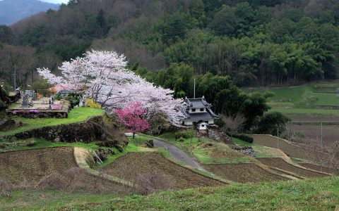 As we descend into another valley, we find ourselves on the banks of a glassy stream, a favourite of local fishermen, forded every now and then by a perfectly placed stone bridge. We emerge once more into the flat plain, and come across tethered water buffalo, curious about onlookers. Here, intricate irrigation channels quench the thirst of patchwork fields of yellow canola flowers, rice paddies, and fruit orchards. This labour-intensive way of small-scale farming uses the existing landscape to allow a truly sustainable form of agriculture.